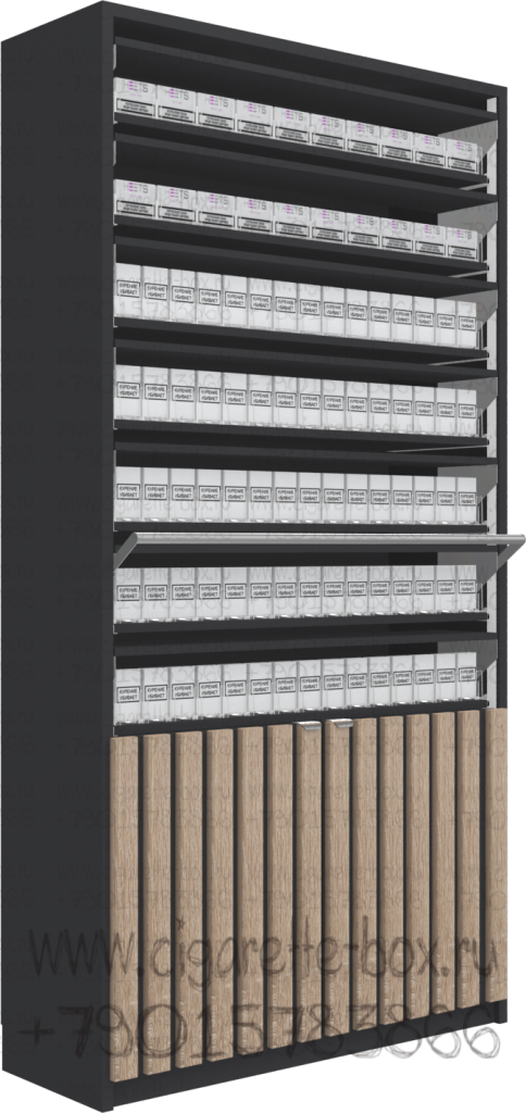 Данная модель комплектуется ячейками для упаковок сигарет (пушерами) зависимости от ширины шкафа.